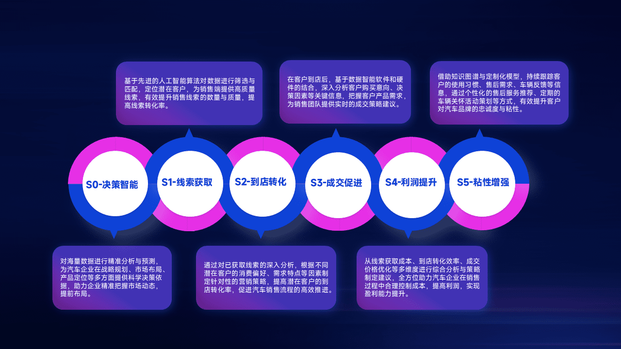 通过拓宽潜在客户来源、、、优化线索分配并提高到店转化率,,,,以增强销售效率。。同时,,,利用线索数据不断优化分析模型,,,有效提升转化率,,,,扩大营销影响力。。。。
